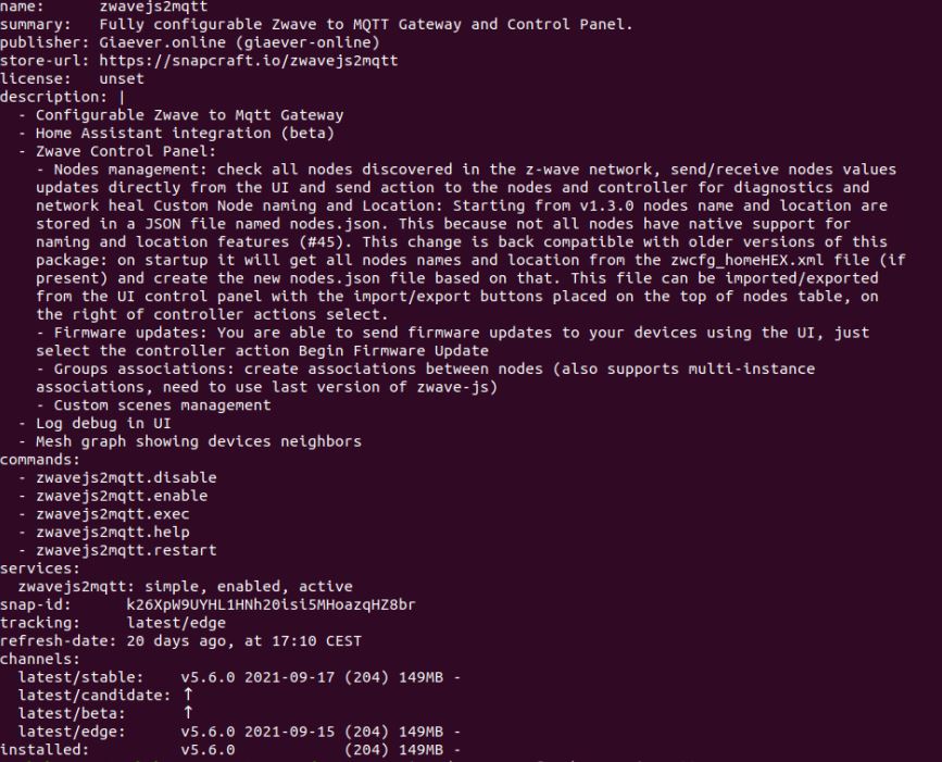 I ran snap refresh today, then snap info zwavejs2mqtt and gets the following: